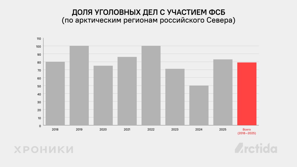 С 2018 по 2021 год в арктических регионах в среднем фиксировалось 7,5 дел в год, в 2022–2023 — около 4,5, а в 2024–2025 годах показатель стабилизировался на уровне шести дел в год.