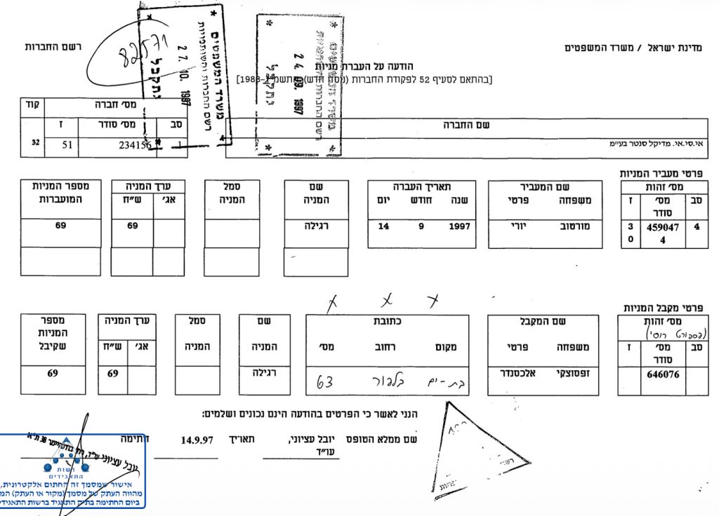 В 1997 году ректор Университета профсоюзов стал основным владельцем медицинской компании I.C.I. Medical Center Ltd — тогда он выкупил доли у предыдущих владельцев. Никакого израильского документа, по крайней мере, в те годы у него еще не было, поэтому он использовал свой российский паспорт старого образца.