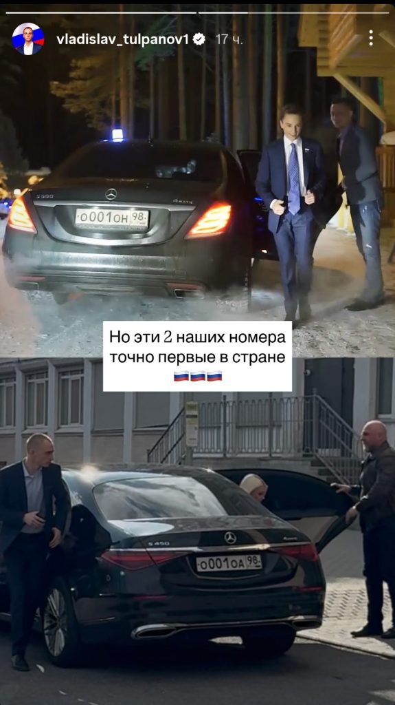 Одновременно Владислав помирился с мамой, вернулся домой и начал публиковать в социальных сетях, как он передвигается по Петербургу в сопровождении машины ДПС с мигалками. На каких основаниях полиция сопровождает семью «молодого политика» непонятно. При этом Тюльпанов хвастается «блатными» номерами автомобилей, на которых передвигается его семья.